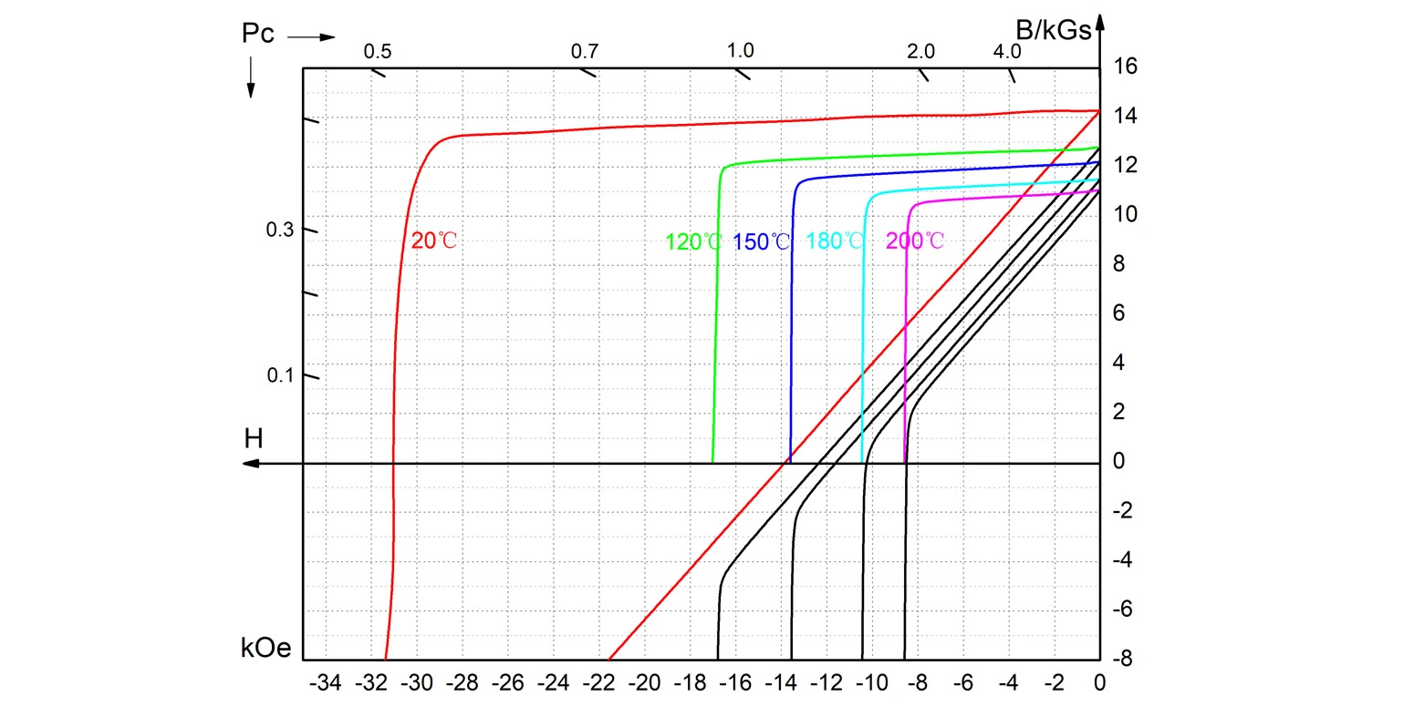 The maximum operating temperature refers to the irreversible magnetic flux loss during an open circuit test; le; 5%, And the temperature point when the PC value of the magnet is L/D=0.7.